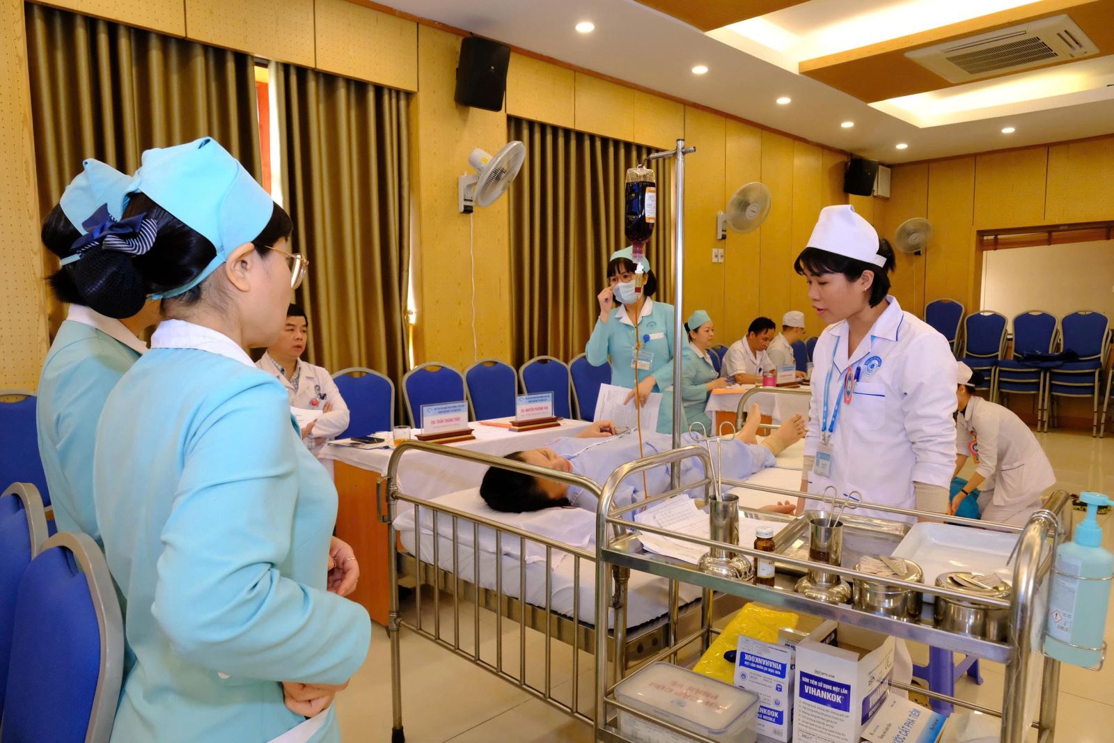 Tại Hội thi này, các “thí sinh” điều dưỡng viên chủ yếu tập trung các 5 quy trình kỹ thuật chuyên môn: Thay băng mắt, cấp cứu ngừng hô hấp tuần hoàn, rửa tay sát khuẩn nhanh, đo dấu hiệu sinh tồn và tiêm tĩnh mạch.