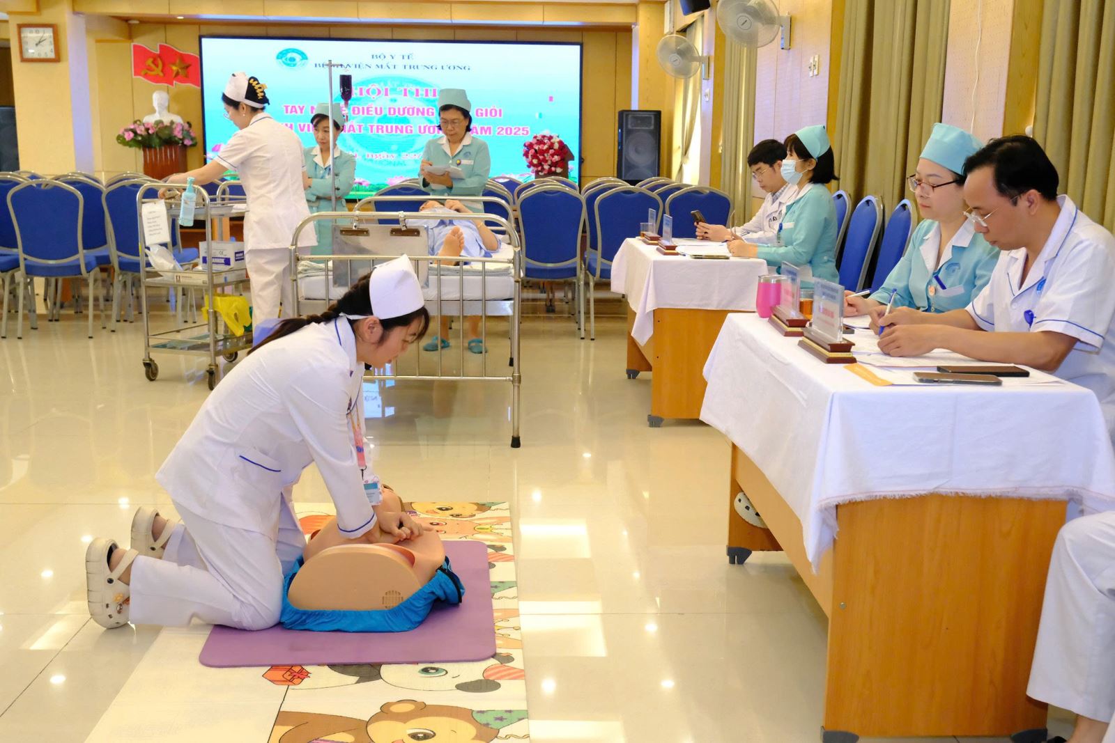 Ngày 22/12/2025, Bệnh viện Mắt Trung ương đã tổ vòng chung kết Hội thi “Tay nghề điều dưỡng viên giỏi” năm 2025 với sự tham dự 15 thí sinh là những điều dưỡng viên giỏi vượt qua các vòng xét chọn, sát hạch sơ khảo, đại diện cho các khoa, phòng lâm sàng, vượt qua hơn 200 điều dưỡng Bệnh viện. Đây là cuộc thi được tổ chức hàng năm nhằm đánh giá kỹ năng kiến thức, kỹ năng, quy trình kỹ thuật chuyên môn và giao tiếp ứng xử, xử lý các tình huống của các điều dưỡng, kỹ thuật viên Bệnh viện trong chăm sóc người bệnh.